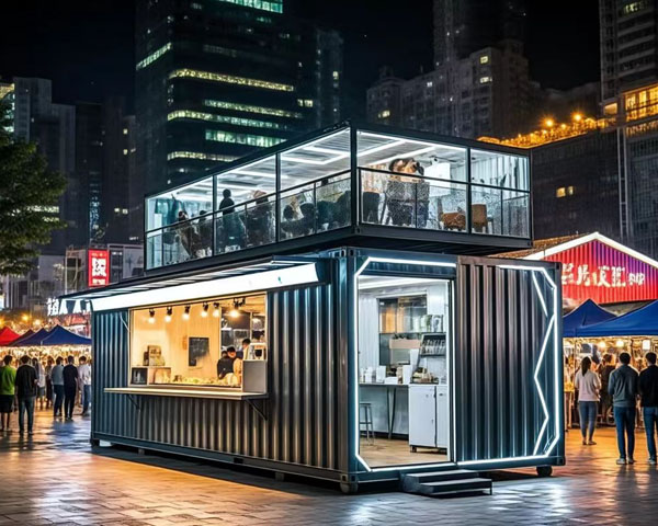 在烟火气十足的小吃街与夜市中,集装箱售卖屋正以其独特的魅力成为一道亮丽风景线。集盒空间设计凭借对商业场景的深度理解和卓越的改造技术,将集装箱变身为功能强大、造型吸睛的特色小吃街售卖屋,为摊主和消费者带来全新的商业与消费体验。